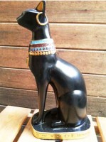 トップ > エジプト彫像 Egyptian > 古代エジプトスタイル 猫の女神 バステト 彫像 ラージサイズ マットブラック色 彫刻/ Ancient Style Cat Goddess Bastet Statue (輸入品)
