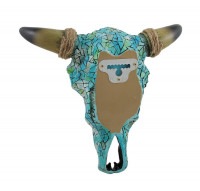【(牡牛) 頭蓋骨の壁掛け モザイク ターコイズ スティア彫像/焼き肉店 ジンギスカン牧場 乳牛 エスニックレストラン プレゼント(輸入品)】