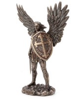トップ > 宗教彫像(キリスト像、マリア像) > ヴェロネーゼ製 高さ28cm 剣と盾を持った、聖ミカエル大天使 アンティークブロンズ風彫像 彫刻(輸入品