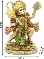 【ヒンズー教の神、空飛ぶハヌマン像 ゴールド風彫像 - インド、ムルティ プージャの彫刻 -マンディール装飾 ウェディングギフト ヨガ 瞑想 祭壇キット スピリチュアル ヒーリング用置物 プレゼント 贈り物(輸入品)】