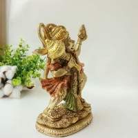 トップ > コンテンポラリー&アールデコアート > ヒンズー教の神、空飛ぶハヌマン像 ゴールド風彫像 - インド、ムルティ プージャの彫刻(輸入品