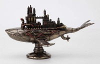 ファンタージー Fantasy > スチームパンク風52ヘルツの鯨 銀河スペース・コロニー ブロンズ風仕上げ彫像 アート彫刻(輸入品