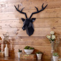 トップ > コンテンポラリー&アールデコアート > 牡鹿の頭部壁装飾彫像 幾何学的な黒い鹿角壁彫刻 フェイク剥製 装飾置物 リビング(輸入品