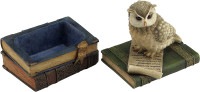 【US 4.5 Inch Collared Scops Owl on Books Decorative Trinket Box, Brown】
