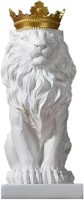 動物彫像 Animals > 高さ35cm王冠を被ったホワイトライオン彫像百獣の王抽象的なライオンキングインテリア置物彫刻幸運アート工芸贈物輸入品