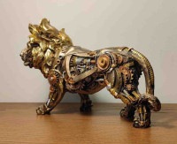 エスニック ethnic > スチームパンク風 歩くライオン彫像 手描き彫刻 SFサイボーググッズ置物 クールギア テーブル本棚 装飾ゴールドオブジェ プレゼント贈り物 輸入品