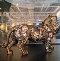 このスチームパンクなライオンのモデルは、尻尾とタテガミの複雑なディテールで、芸術のストーリーを織りなしており、ユニークな作品に魅惑的な魅力を加える細心の注意を払ったデザインを誇示しています。