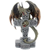 人間のあらゆる知識の戦士の守護者として、この強力な中世のドラゴンは、ドルイド僧マーリンによって最初に与えられ、時代を超越したケルト十字に象徴される、神聖な生命の輪を守るために、部族の尾をアーチ状に伸ばします。 赤い舌を持つドラゴン獣を中心に、野蛮に彫刻された、デザイン トスカノ社限定の彫像は、高品質のデザイナーレジンで鋳造され、ガーゴイルのゴシック様式の栄光をすべて手作業で塗装されています。