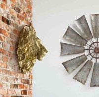 このゴールドのライオンヘッドのウォールアートは手作りで手仕上げされており、ご自宅のどんな部屋もポップにする、驚くほど精巧な作品です。
