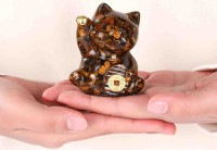 「天然石、招き猫像 レイキヒーリング 輝石置物