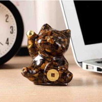 トップ > コンテンポラリー&アールデコアート > タイガーアイ ブラウン ラッキーキャット 幸運のネコ猫置物 お金猫彫像 招き猫 風水装飾幸運置物輸入品