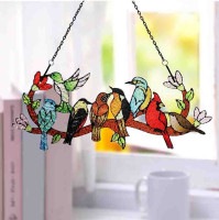 動物彫像 Animals > 枝に止まる鳥ステンドグラス カーディナル ハチドリ カワセミ両面ガラスパネル窓吊り下げ装飾鳥好き贈り物輸入品