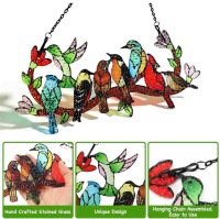 Huray Rayho Birds On Branch Stained Glass Suncatcher Cardinal Hummingbird Kingfisher Double Side Glass Panel Window Hanging Decor Bird Ornament Bird Lover Gift for Mom Grandma