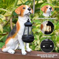 ソーラーランタンを咥えた、ビーグル犬屋外装飾 LEDライト 屋外ガーデン デコレーション装飾置物 パティオ、芝生、庭アート デコ 新築祝いプレゼント贈り物 輸入品