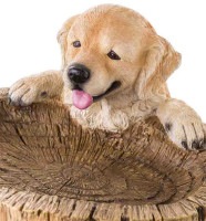Plow & Hearth Two Playful Golden Retriever Puppies Resin Birdbath Hand-Painted All-Weather Wood-Look Resin Landscape and Garden Accent,