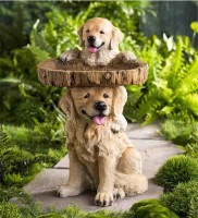 動物彫像 Animals > 遊び心のあるゴールデンレトリバーの子犬2匹の餌台テーブル樹脂製バードバス木目調ガーデン装飾置物贈り物輸入品