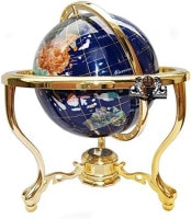 Unique Art Since 1996 14" Tall Blue Lapis Ocean Gemstone Globe with Tripod Gold Stand